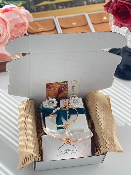 Each LUNAROSE creation is presented in our signature gift packaging—cushioned with premium protective lining, nestled within a crafted jewelry box, accompanied by a velvet pouch and a care guide.